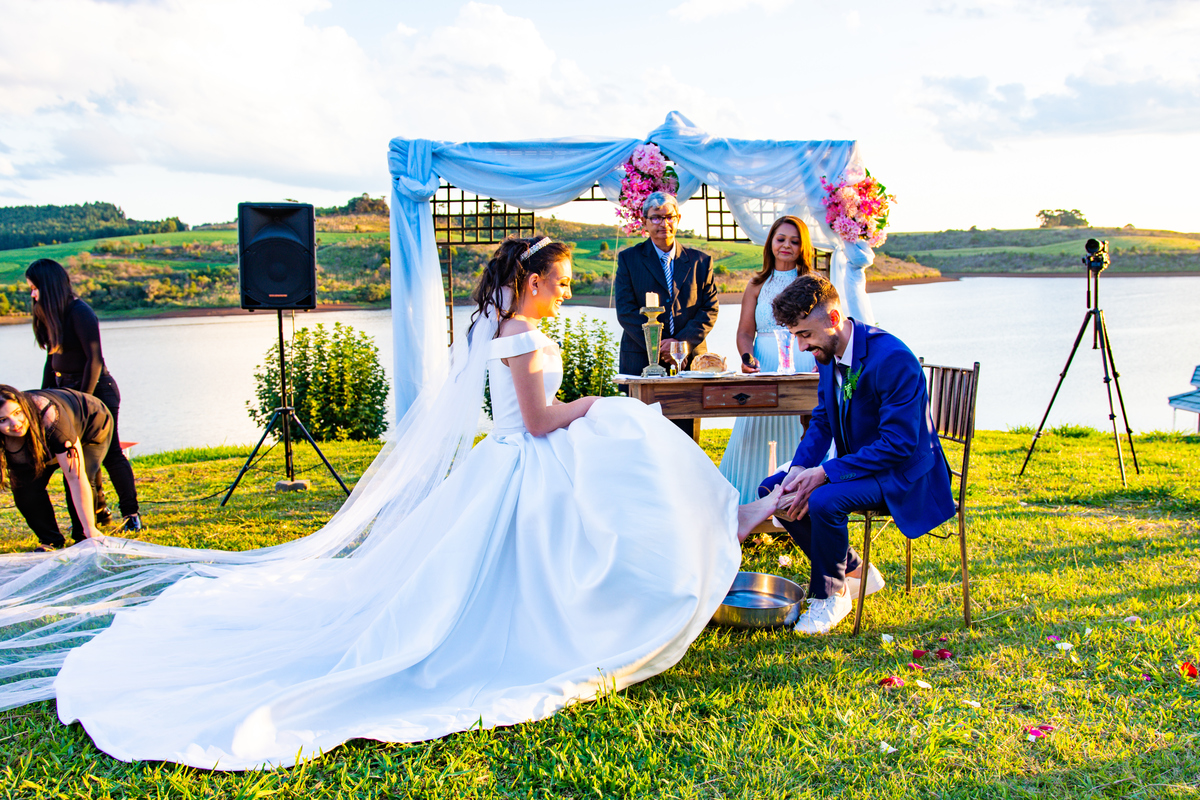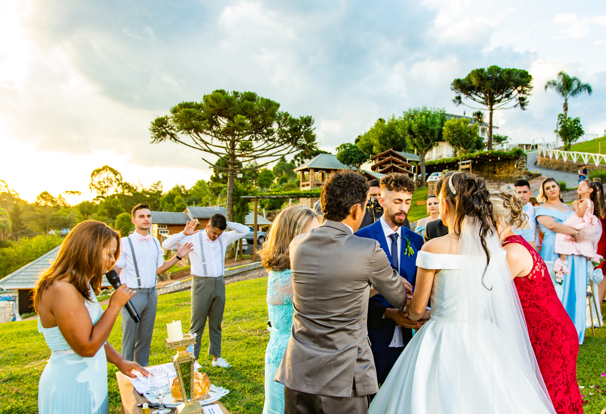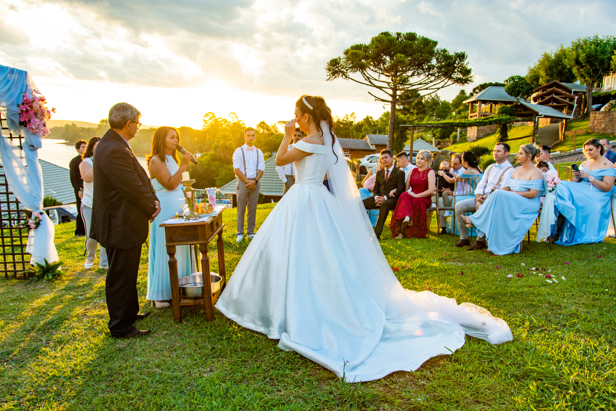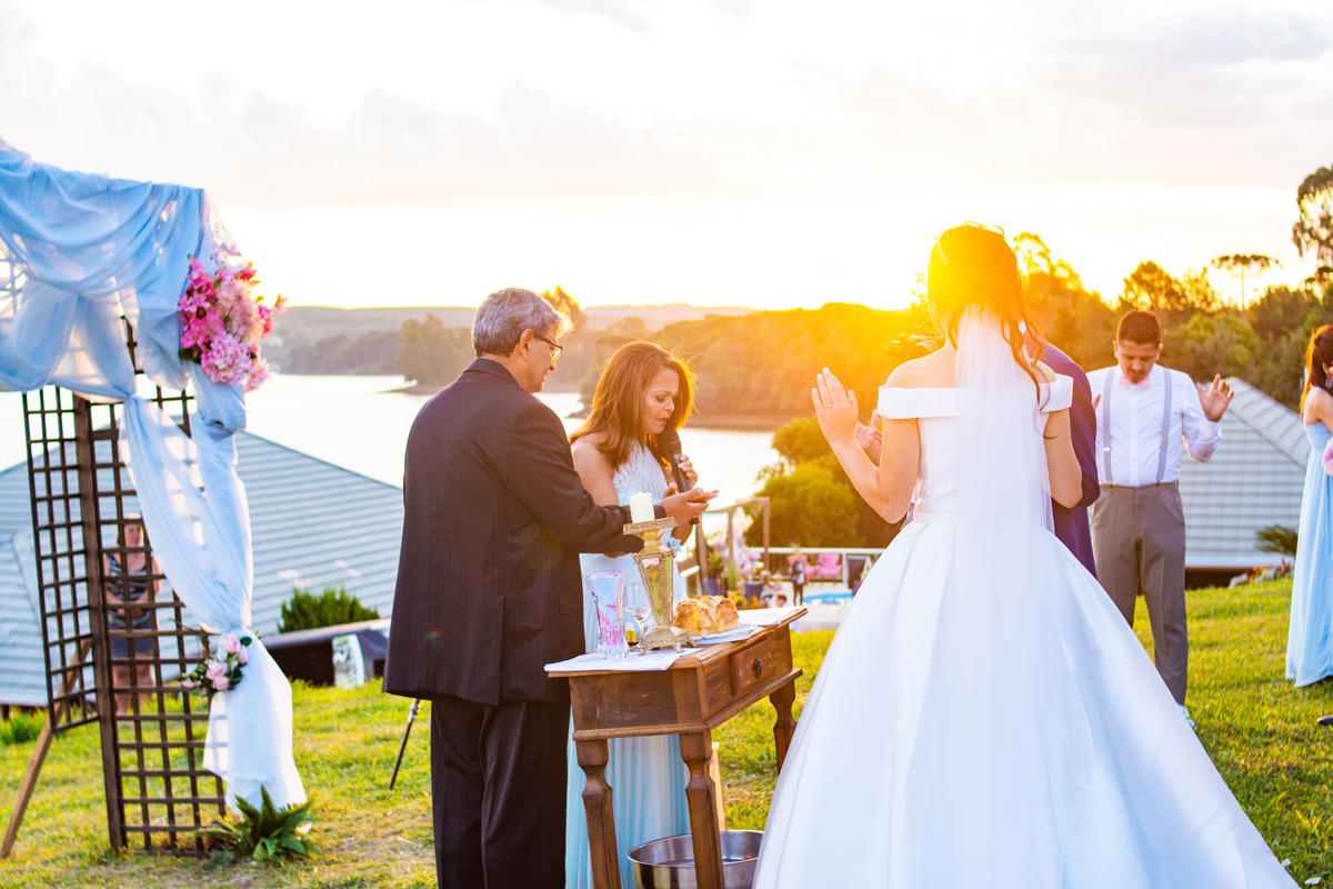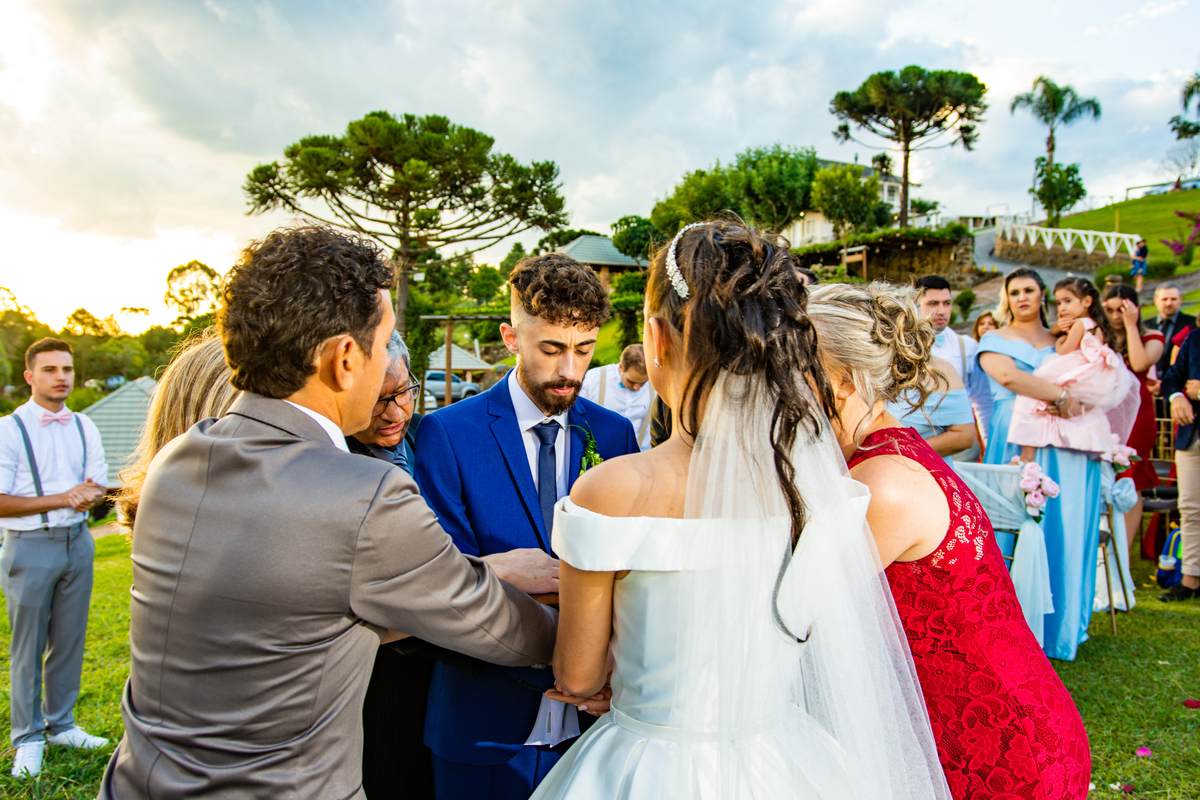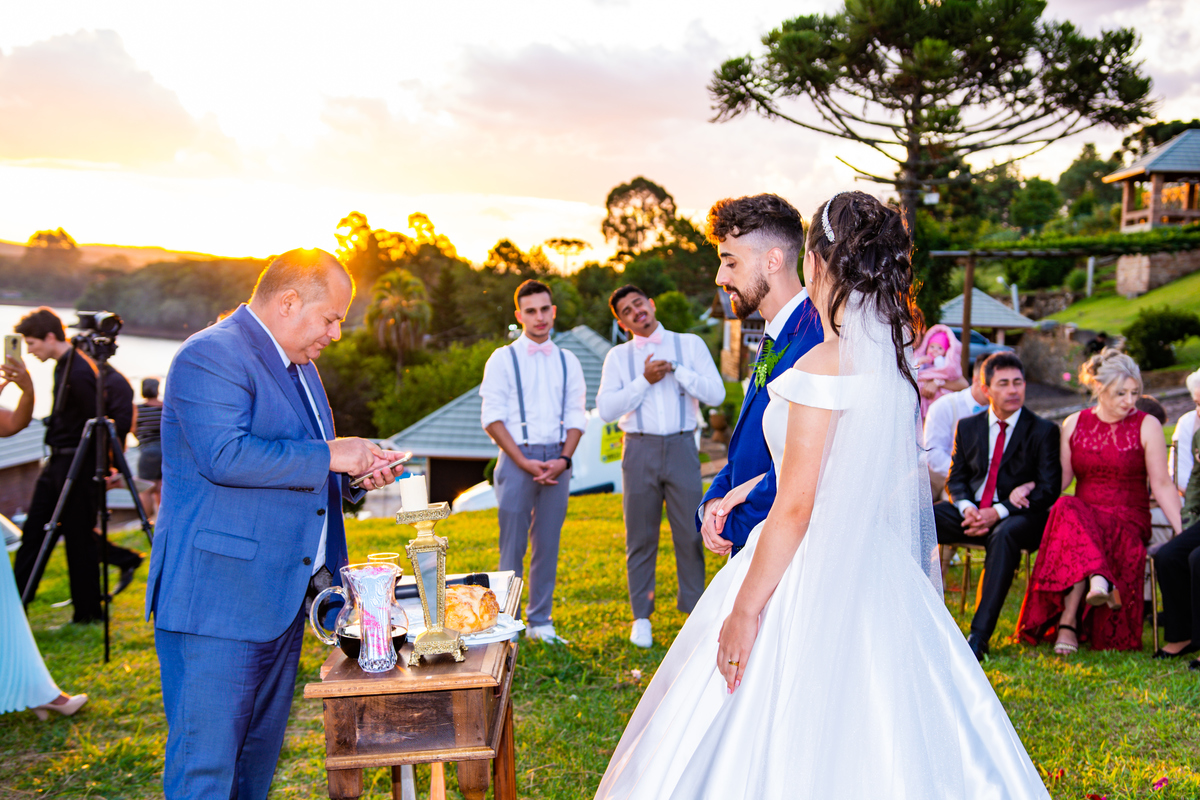 Pensa num entardecer lindo!!!! Quando a preocupação com a chuva, deixou em dúvida quanto ao casamento ao ar livre, comentei com o Noivo (Jonatan) que o entardecer seria especial, com nuvens riscadas como numa produção de cinema!!!! E não é que Deus estava nos ouvindo!!!!