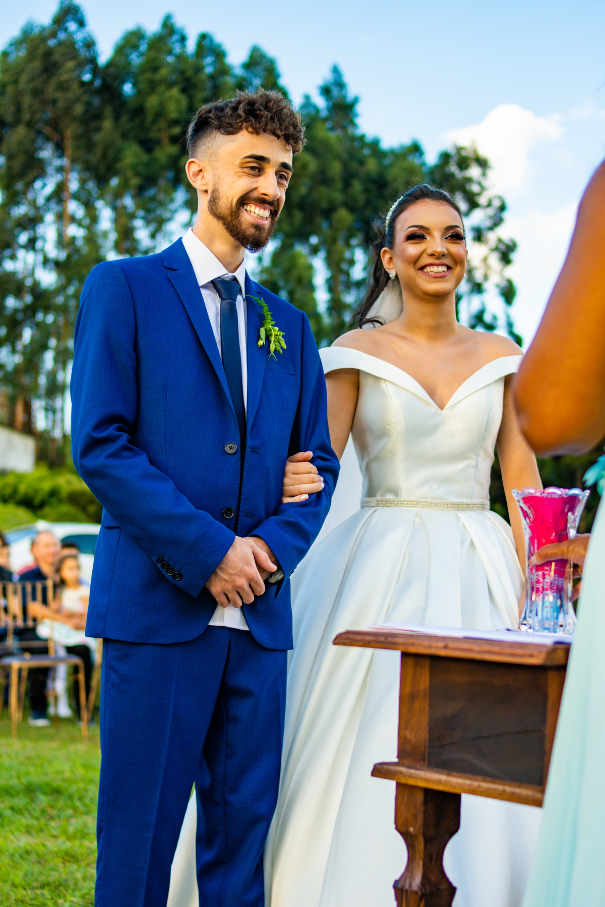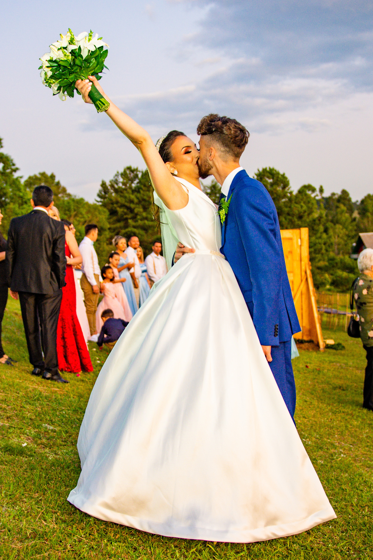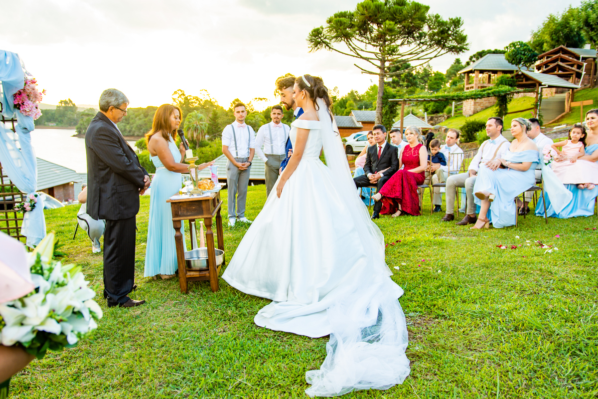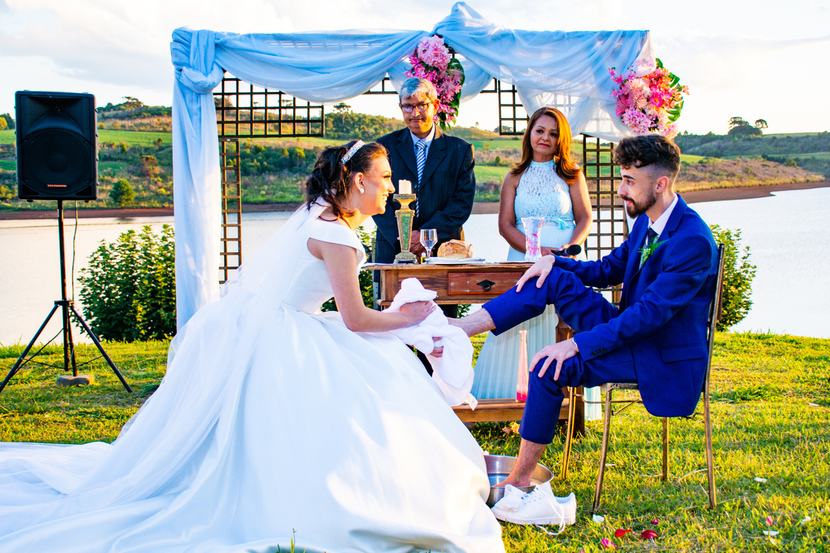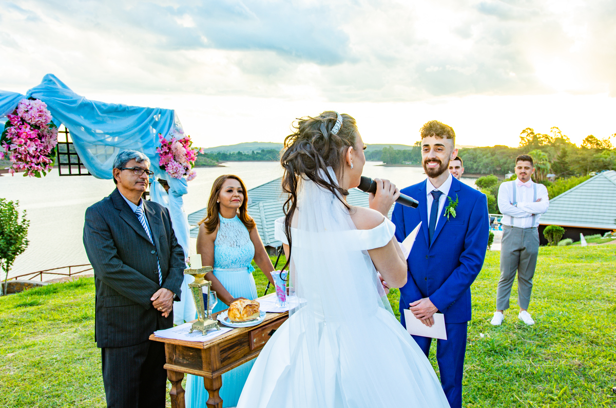 Pensa num entardecer lindo!!!! Quando a preocupação com a chuva, deixou em dúvida quanto ao casamento ao ar livre, comentei com o Noivo (Jonatan) que o entardecer seria especial, com nuvens riscadas como numa produção de cinema!!!! E não é que Deus estava nos ouvindo!!!!